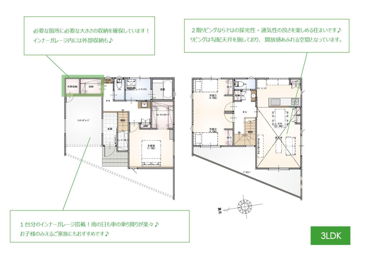*収納スペースもあり、車やアウトドアの趣味にも便利なインナーガレージ。