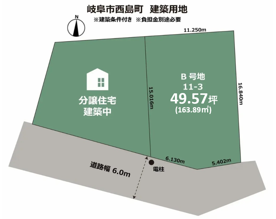 | 所在地 | 岐阜市西島町11-4(A号地)、11-3(B号地) | 交通 | 岐阜バス「西島町」徒歩4分 JR東海道本線「西岐阜駅」徒歩38分 |