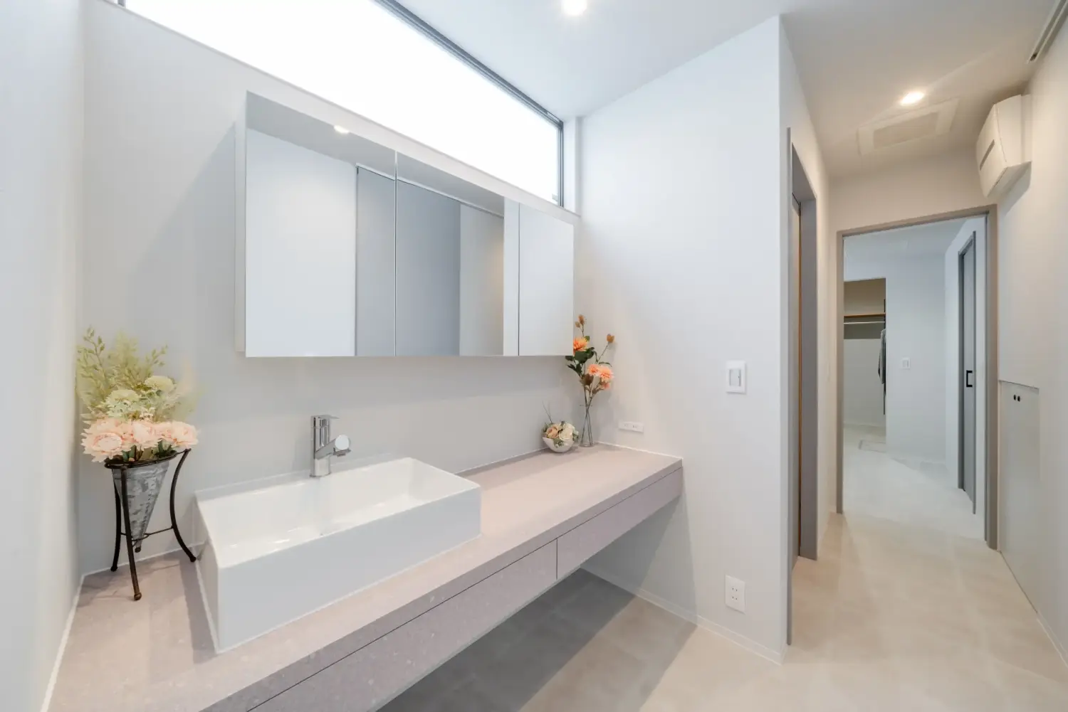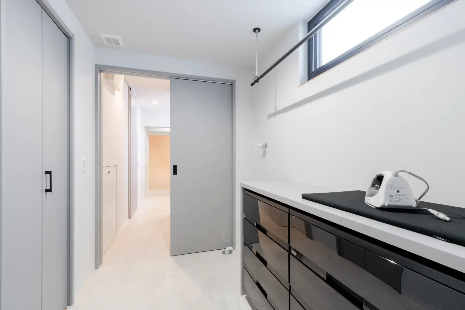 洗う・干す・しまうを一直線で行える動線が、忙しい日々の負担を軽減します。