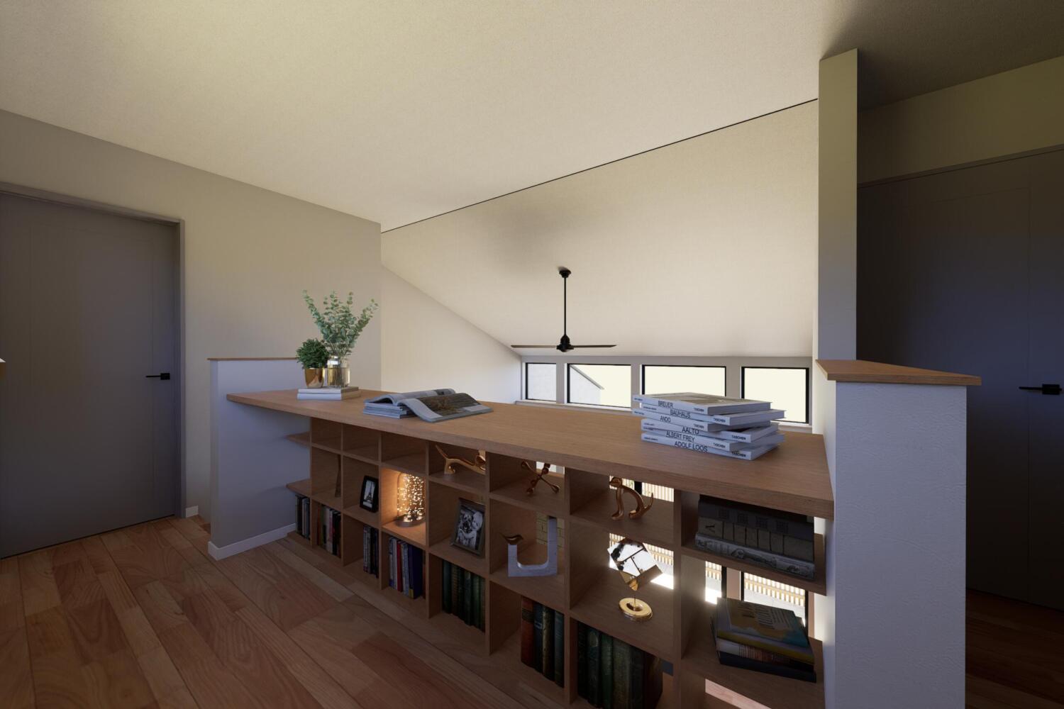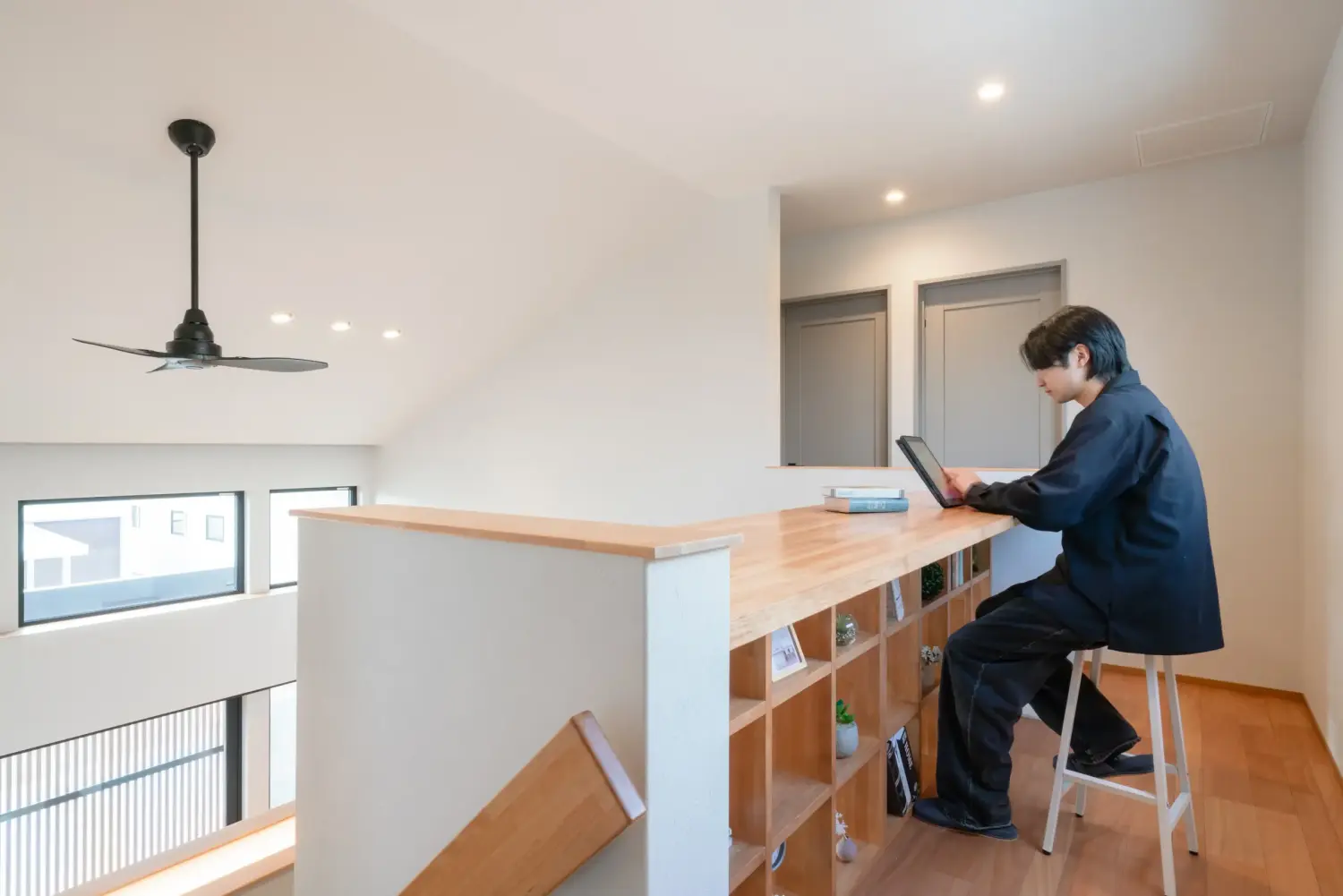 読書やワークスペース、子どものスタディコーナーとしても活躍し、家族の気配を感じつつそれぞれの時間を楽しめます。