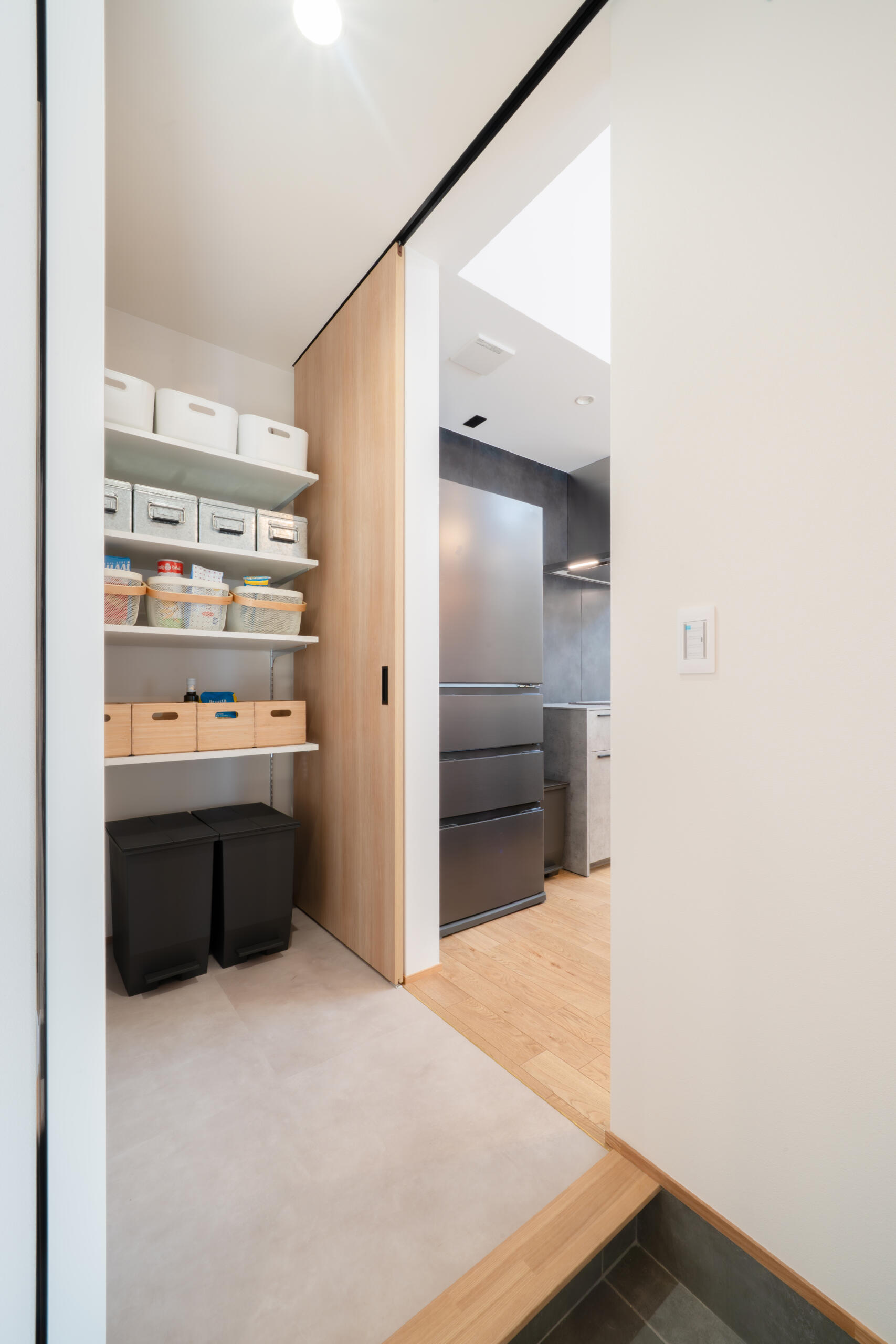 玄関土間から直通でパントリー、キッチンへ。