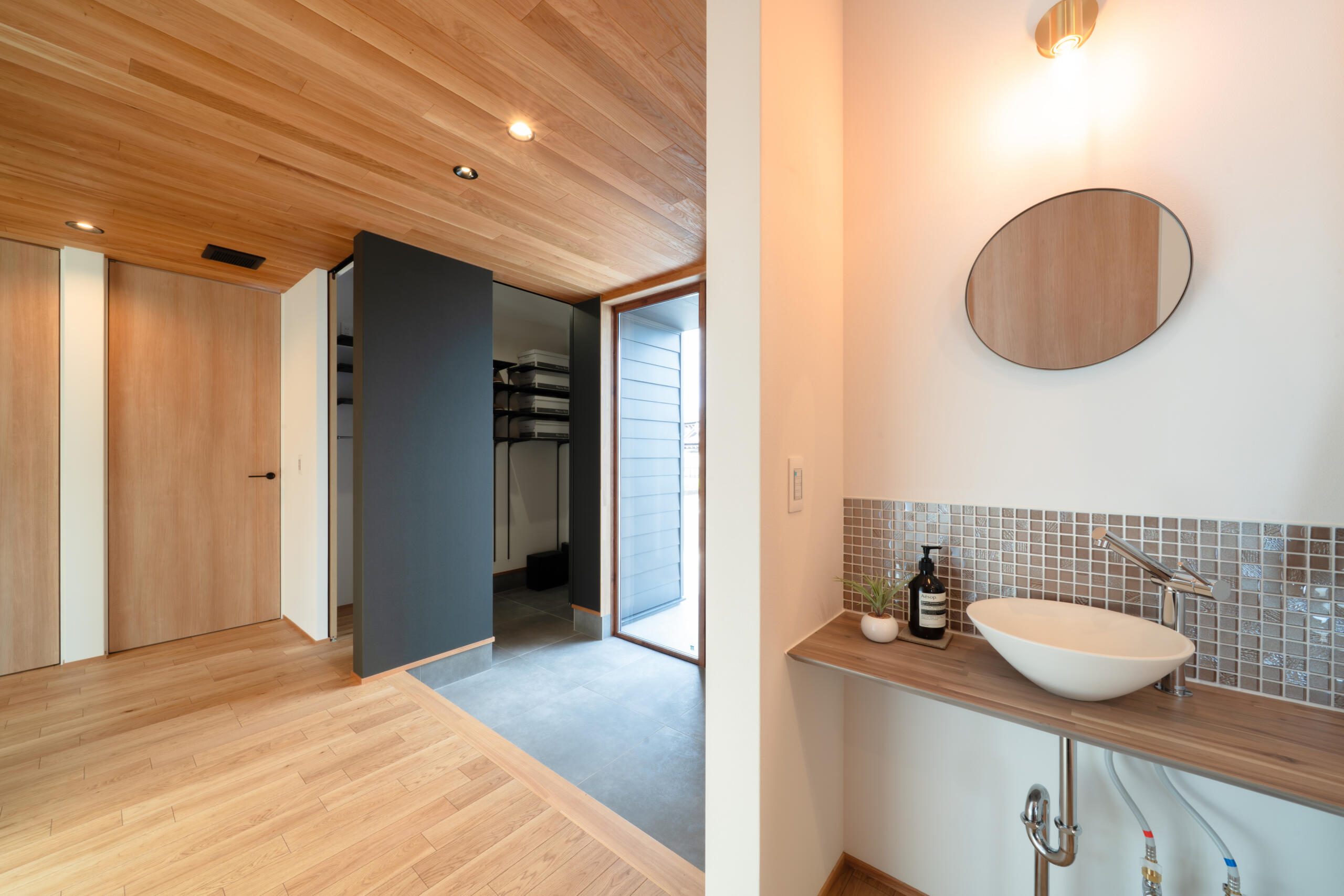 ”ただいま動線”で手洗いが習慣になる玄関。