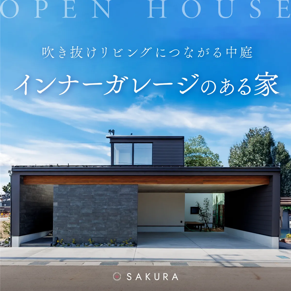 インナーガレージのある家|吹き抜けリビング×中庭in.富山市下冨居