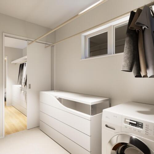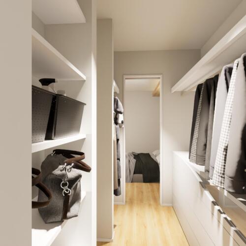 主寝室⇔ファミリークローク⇔サンルーム脱衣室が
