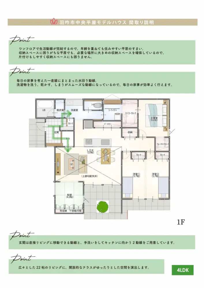 家事楽動線と平屋でも現実可能な収納力が魅力的。