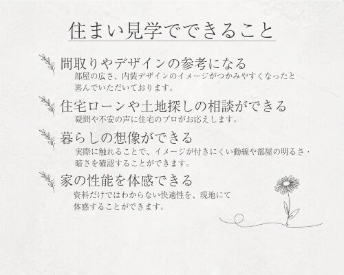 \現地でお部屋の広さや雰囲気、素材を楽しんでみませんか/