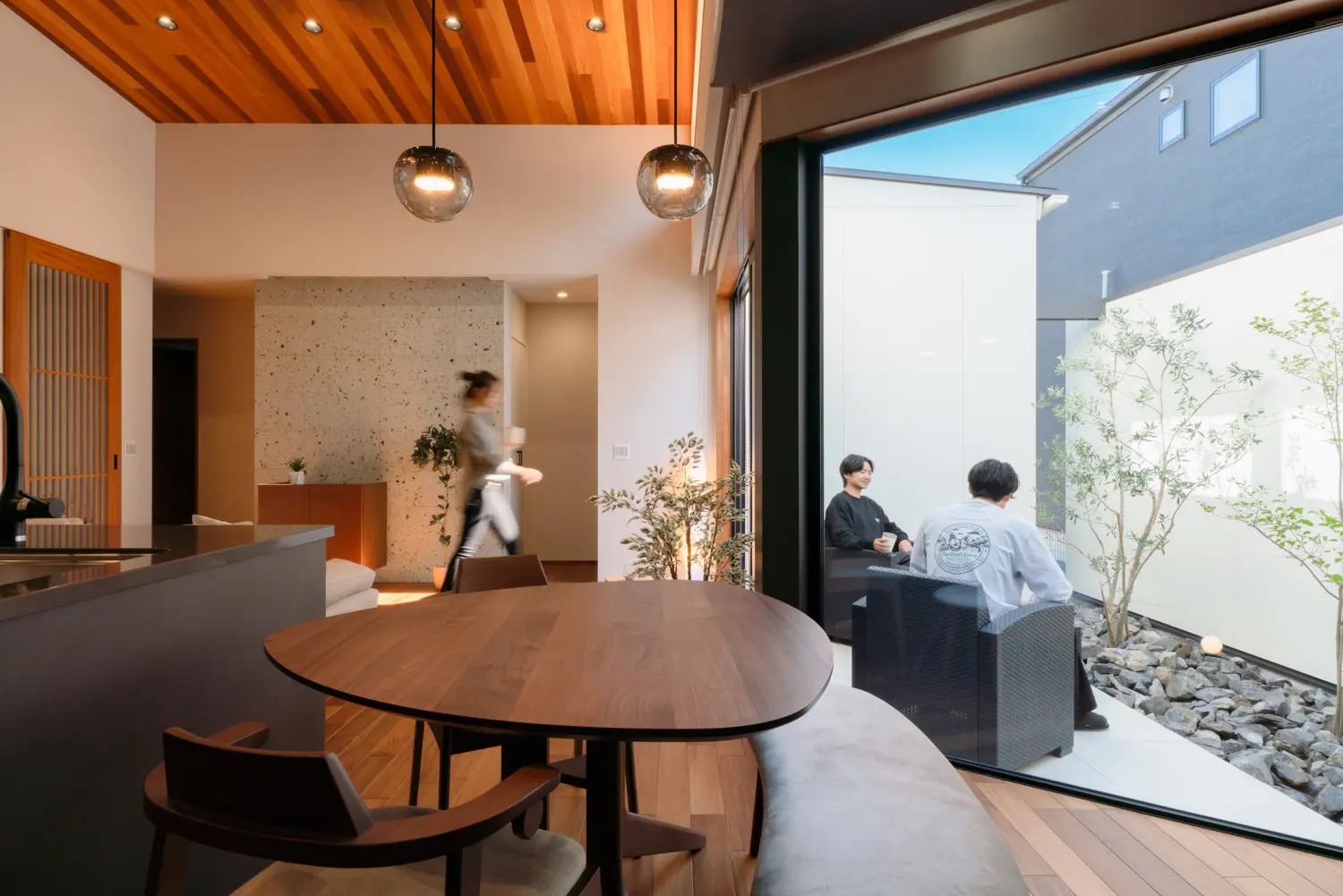 天候を気にせず過ごせる内と、外の心地よさを感じる外。