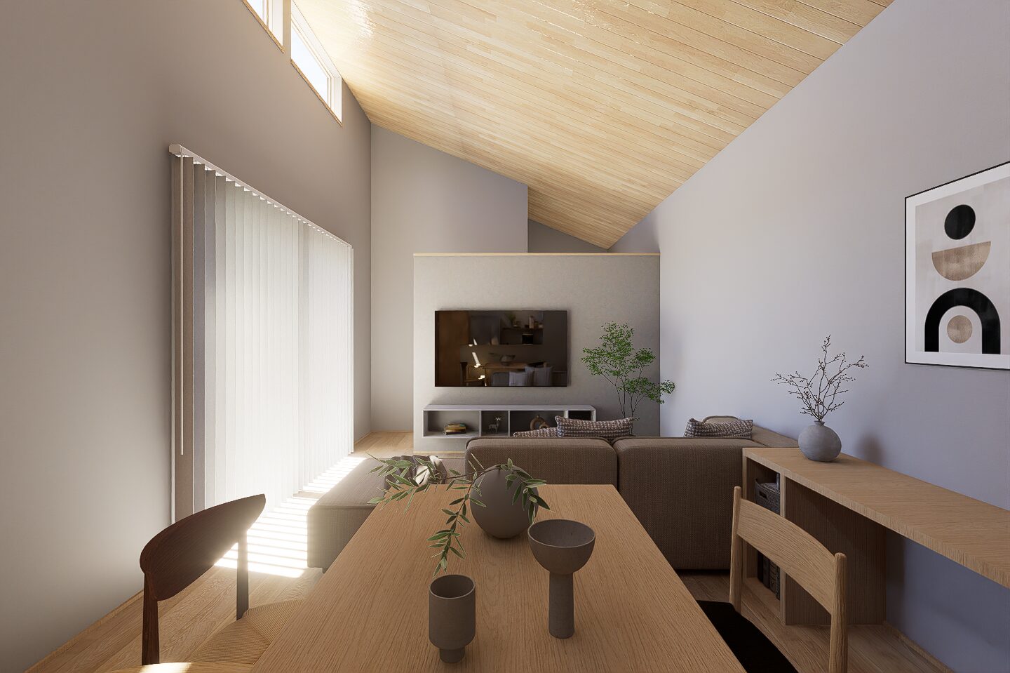- ・土地面積:150.37㎡(45.48坪) ・施工面積:77.55㎡(23.41坪)