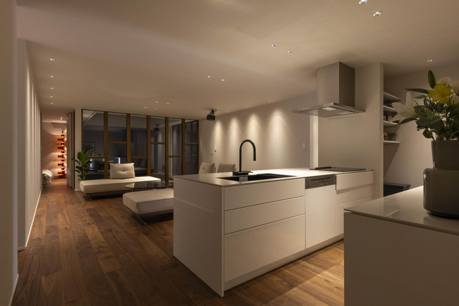 - 生活感を感じさせない洗練されたデザインのホテルライクな平屋。約28帖のリビングを中心にした間取りで、デザインだけでなく生活動線や収納にもこだわった自慢したくなるお家です。
