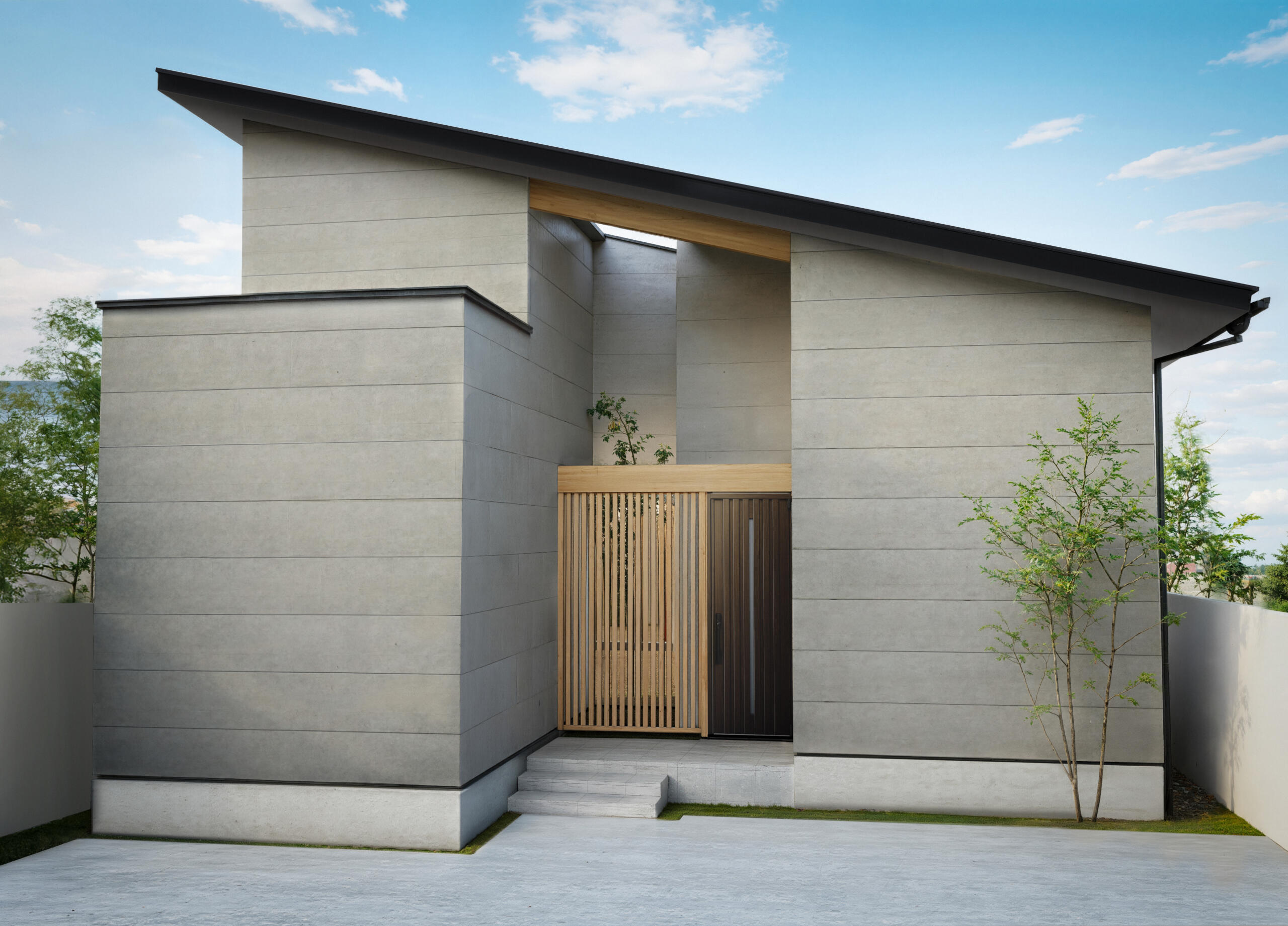 無駄を削ぎ落したシルエットに素材の質感が映える外観デザイン
