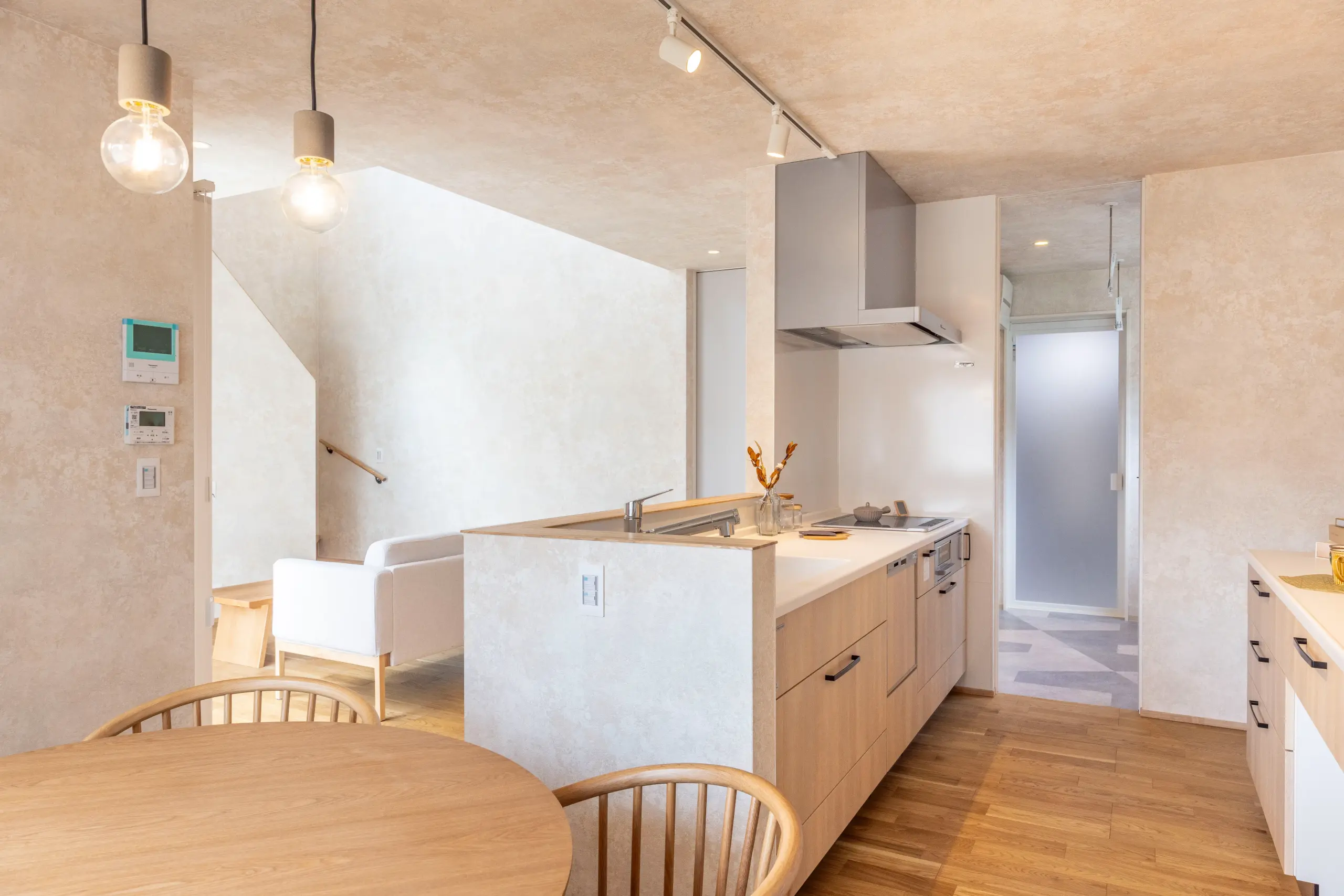 家事動線にもこだわり、キッチン・洗面・収納をぐるりと回れる回遊動線を実現。