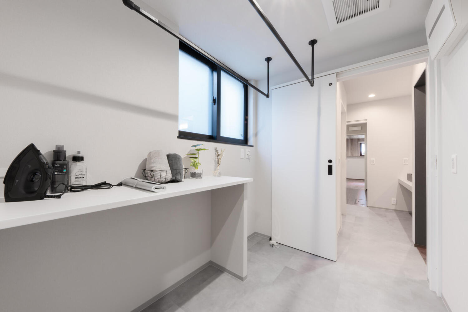 - 「洗って・干して・仕舞う」の動きもスムーズに。 回遊動線は日々の忙しい家事を楽にしてくれて、 家族との時間がもっと豊かになる間取り。