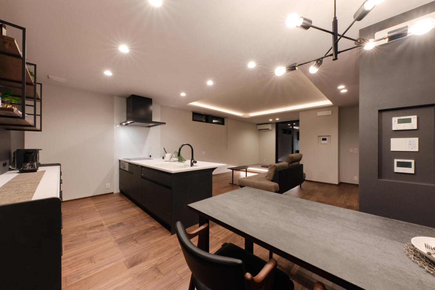 - キッチンはオープンタイプ。 ご家族と一緒に並んでお料理もできる、広々スペースです。 食べ終わったお皿もカウンターからすぐにシンクへ。 家事のゆとりも増える設計です。