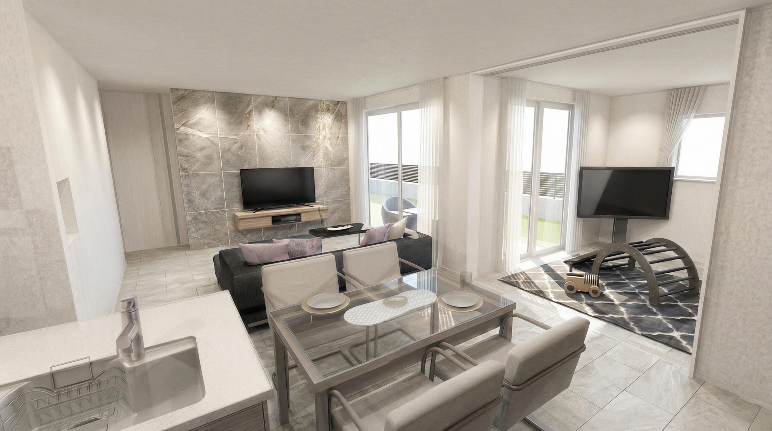 ☑ 石目調アクセントウォールのあるモダンなLDK