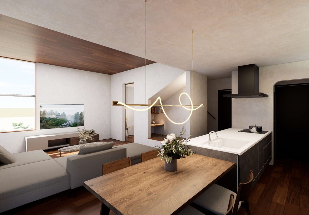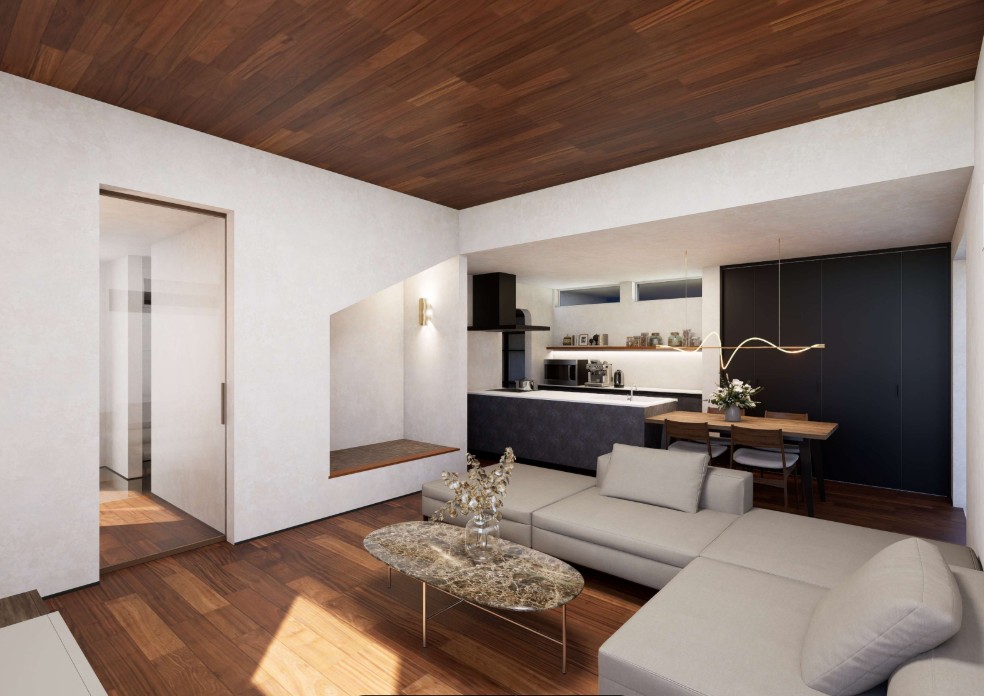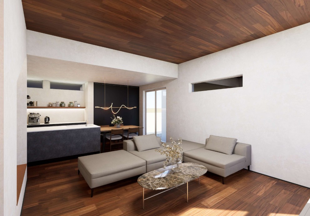 - LDKも天井と床には木目を採用。 木のぬくもりと暮らす、くつろぎ空間です。 リビングには、正面からは丸見えにならないよう配慮された窓。 明かりもしっかり取りつつ、プライベートも守ります。