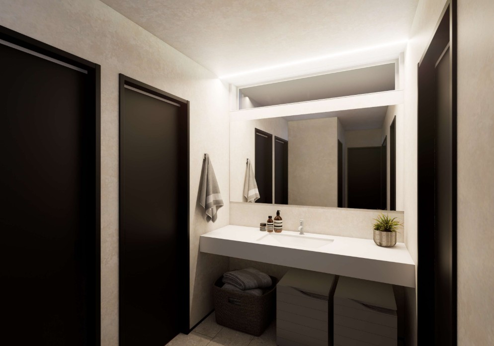 - 水回りを一つにまとめ、忙しい家事の時間も減らしてくれる間取り。 家族との時間をより豊かにします。