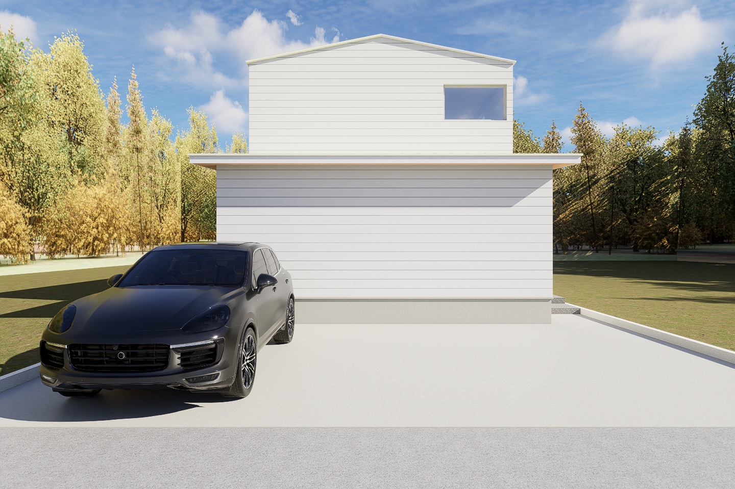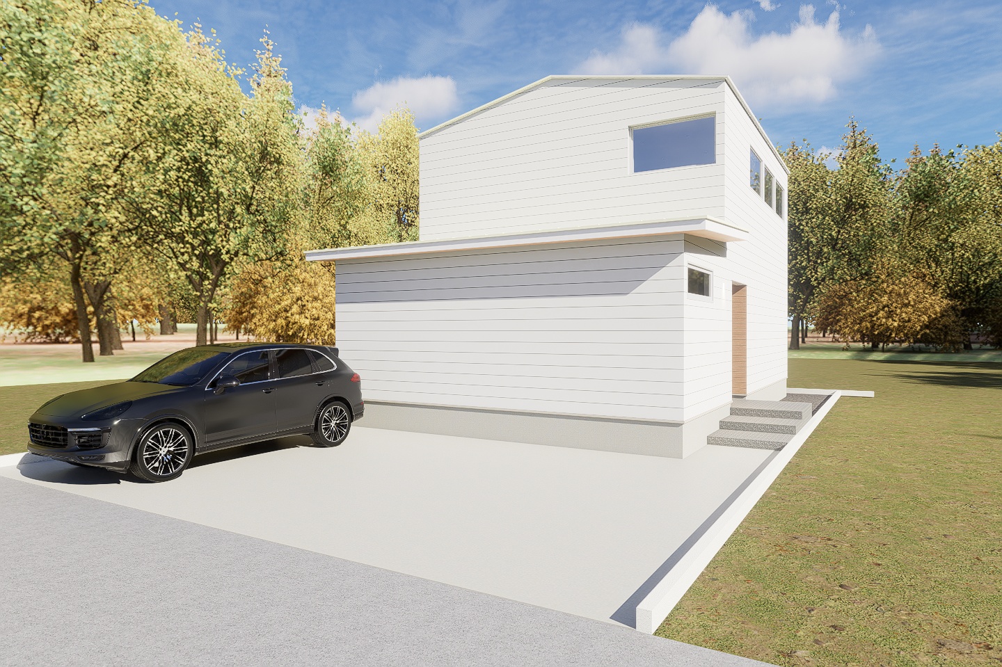 ホワイトの横貼りガルバリウムが目を惹く外観🦢