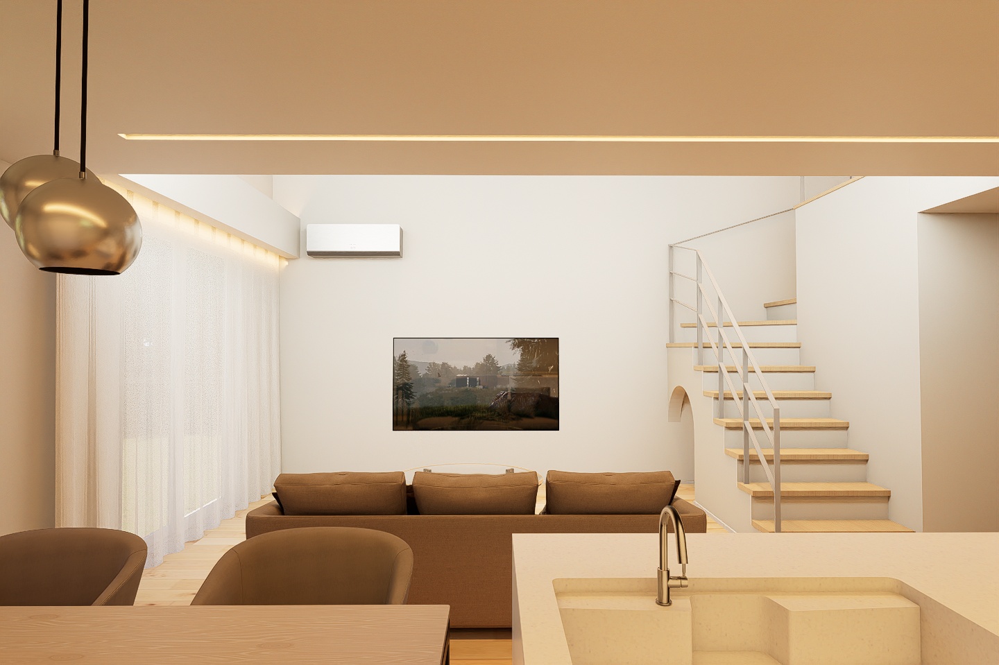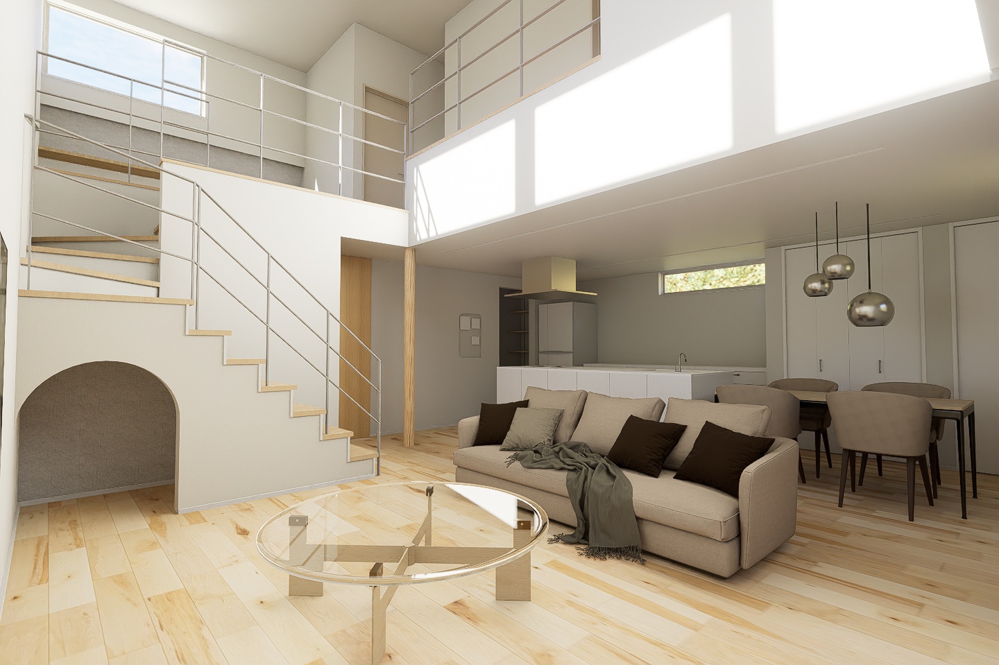 大開口の吹き抜けでつながる、大空間。