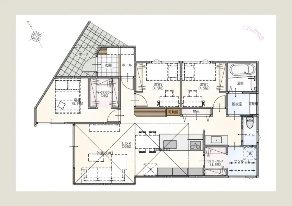 広々とした主寝室に使い勝手の良い洋室。コンパクトにまとめられた水廻り動線。