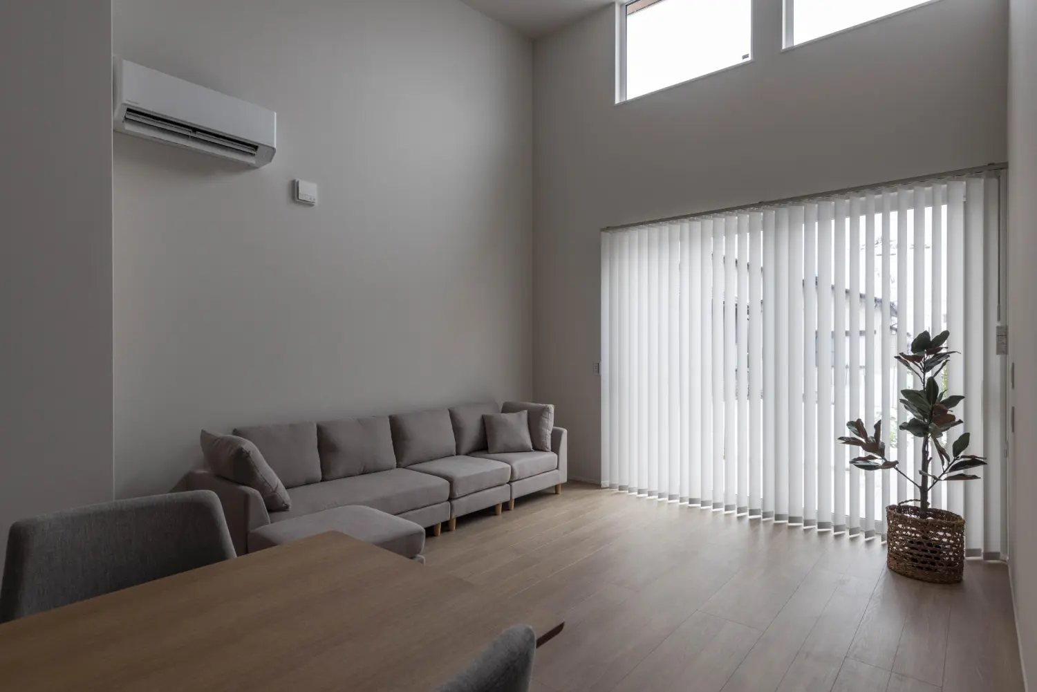 明るい光がたっぷり降り注ぐ高天井のLDK。