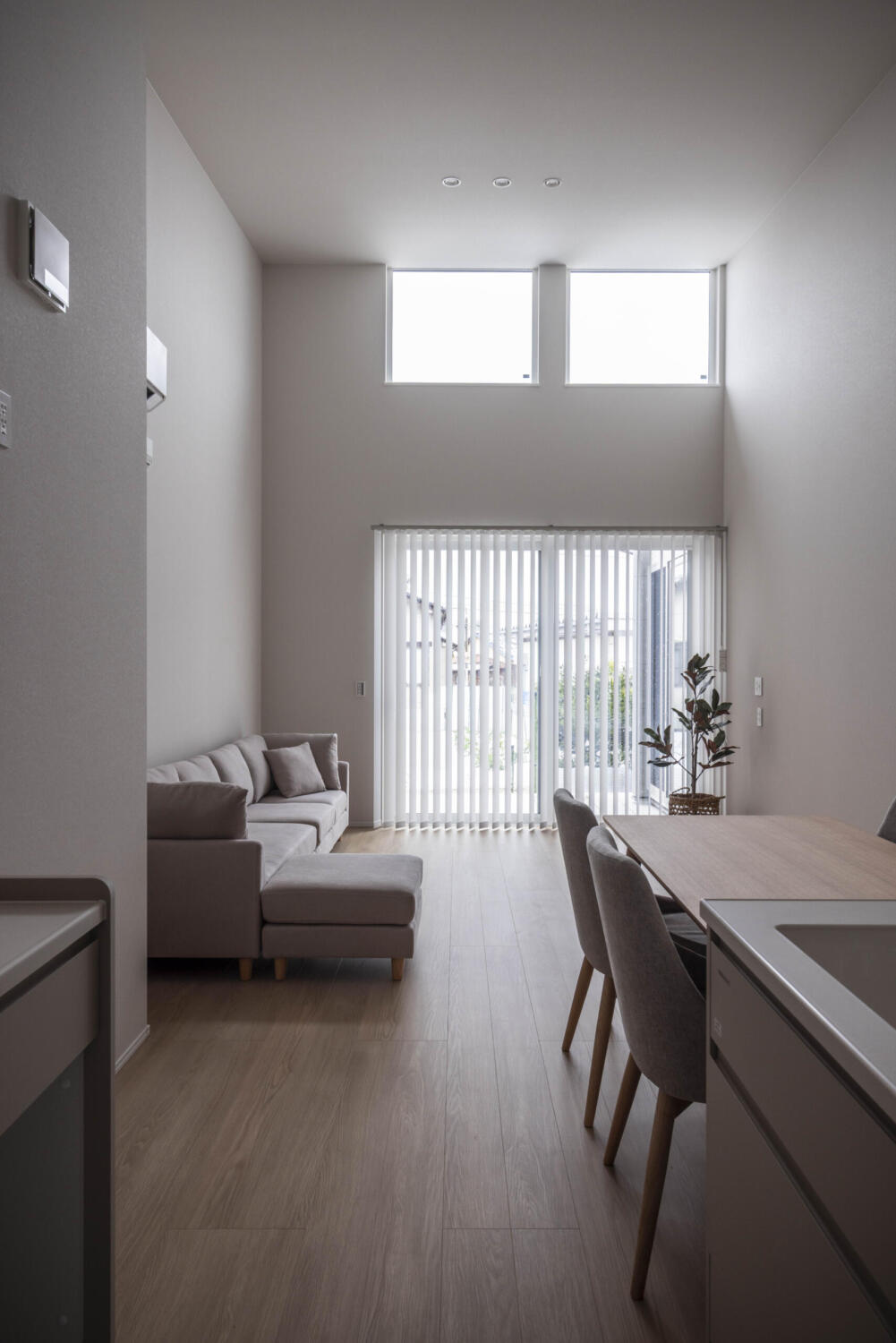 | POINT | 地形と周辺環境を生かした間取り。 勾配天井がつくる、のびやかなリビング。 |