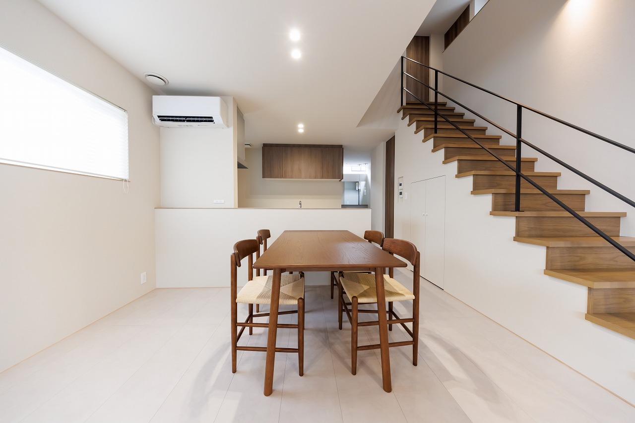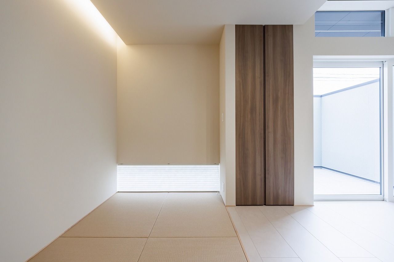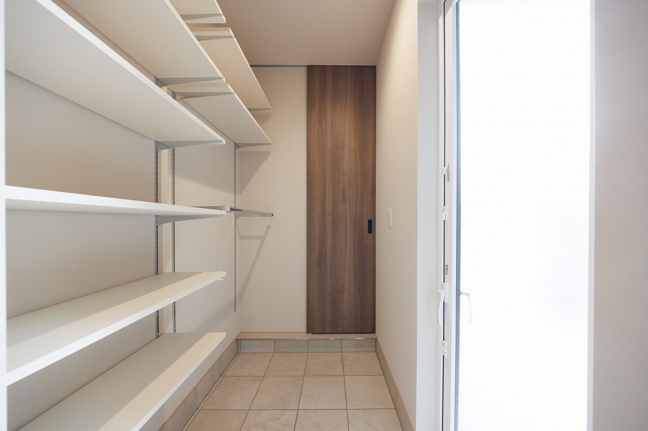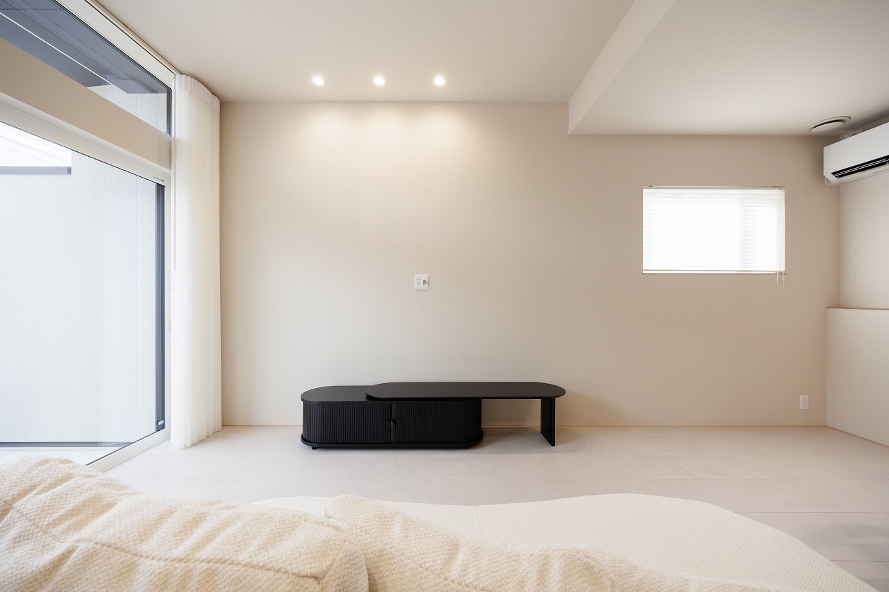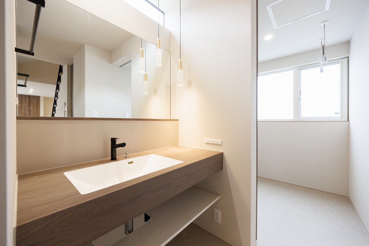 POINT | 塀で囲まれた中庭は外からの視線を遮りながらもリビング空間に光を取りこみます。サンルームからファミリークロークへの動線もコンパクトで、ハンガーで干したまま収納が可能◎ |