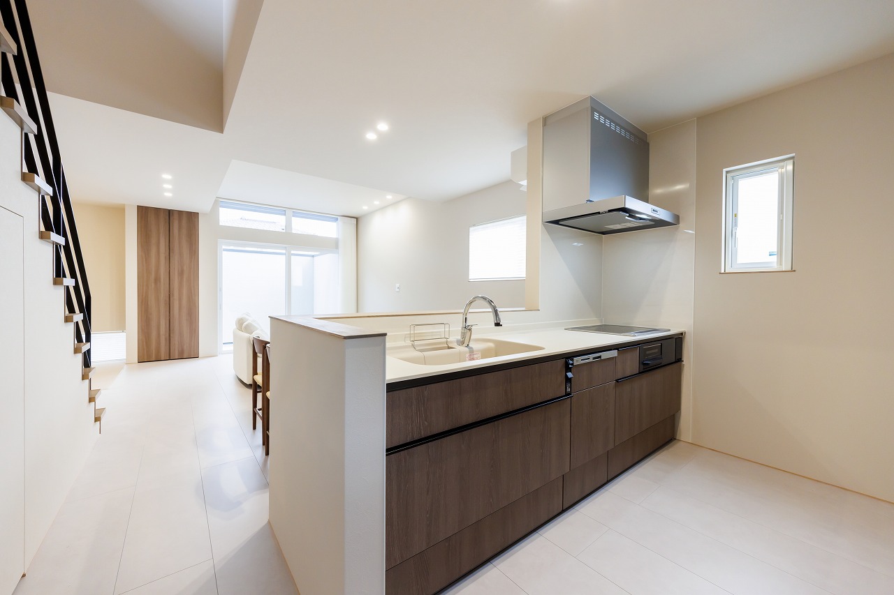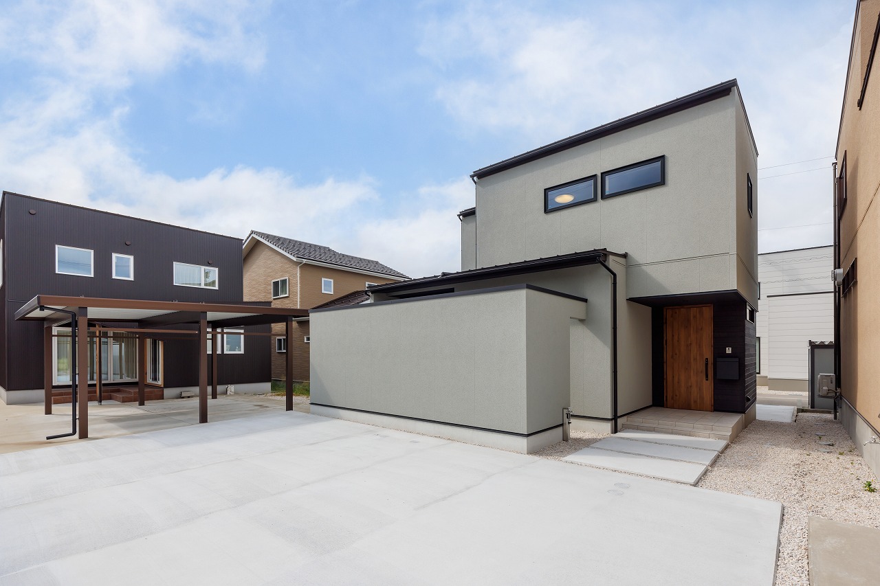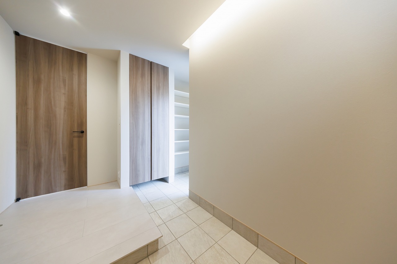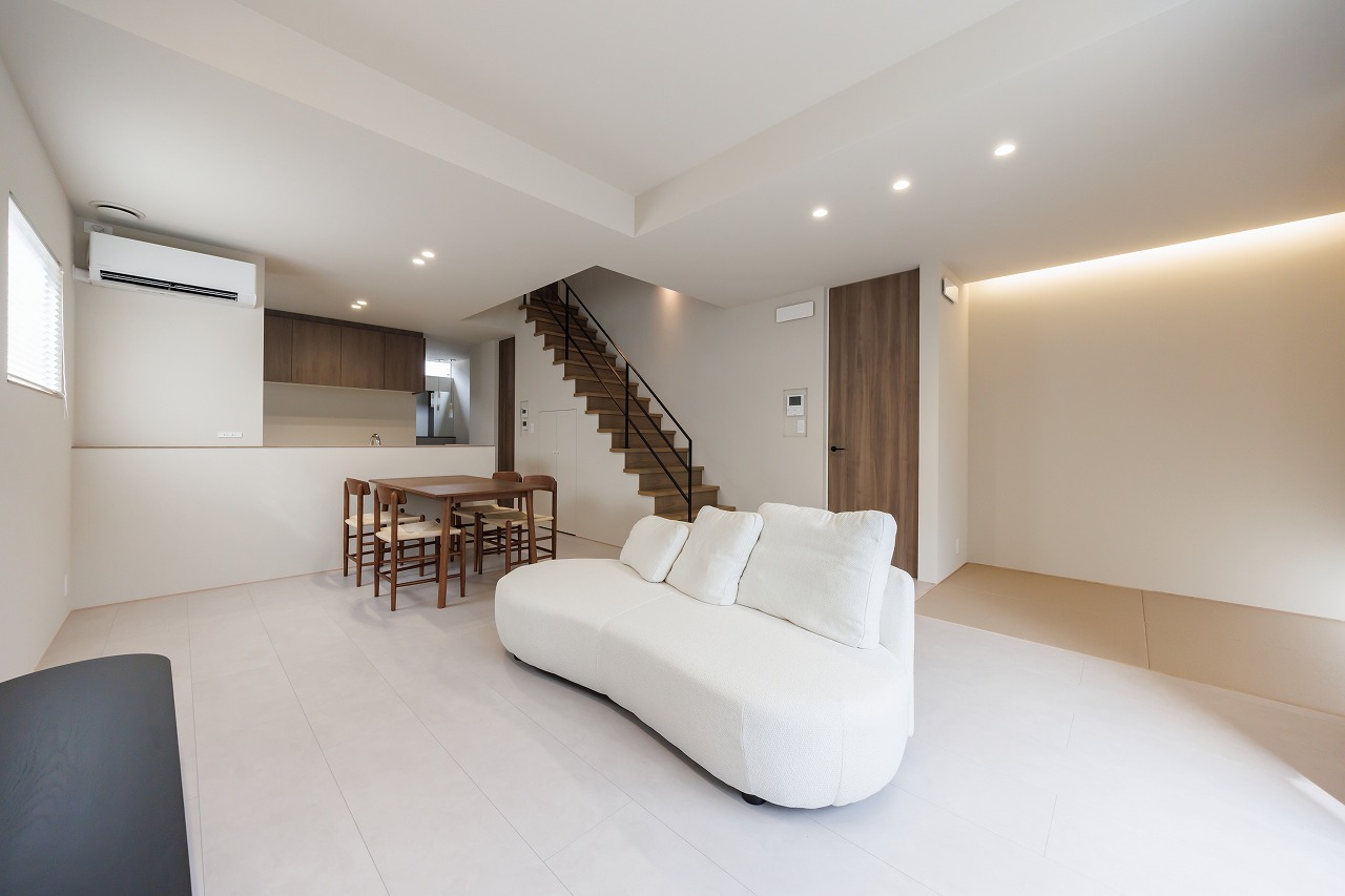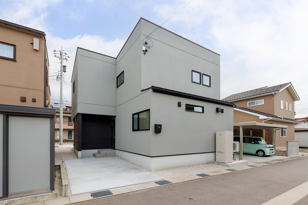 POINT | 塀で囲まれた中庭は外からの視線を遮りながらもリビング空間に光を取りこみます。サンルームからファミリークロークへの動線もコンパクトで、ハンガーで干したまま収納が可能◎ |