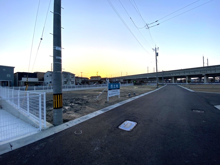 | POINT | これからきれいな新築が建ち並ぶ大型造成地です。 周囲にスーパーやドラッグストア、飲食店など多数。 小中学校も近く、子育て世帯にもおすすめです! |