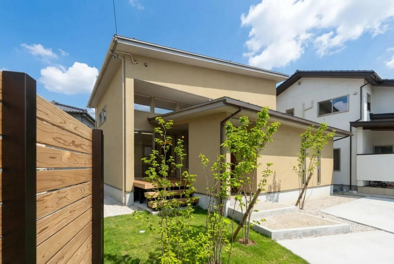 - リビングの掃き出し窓から直接出られるウッドデッキは、家の「内」と「外」を繋ぐ心地よい中間領域。 セカンドリビングとして外で食事を楽しんだり、お子様やペットの遊び場として活用したりと、日常に「くつろぎ」と「開放感」をプラスします。