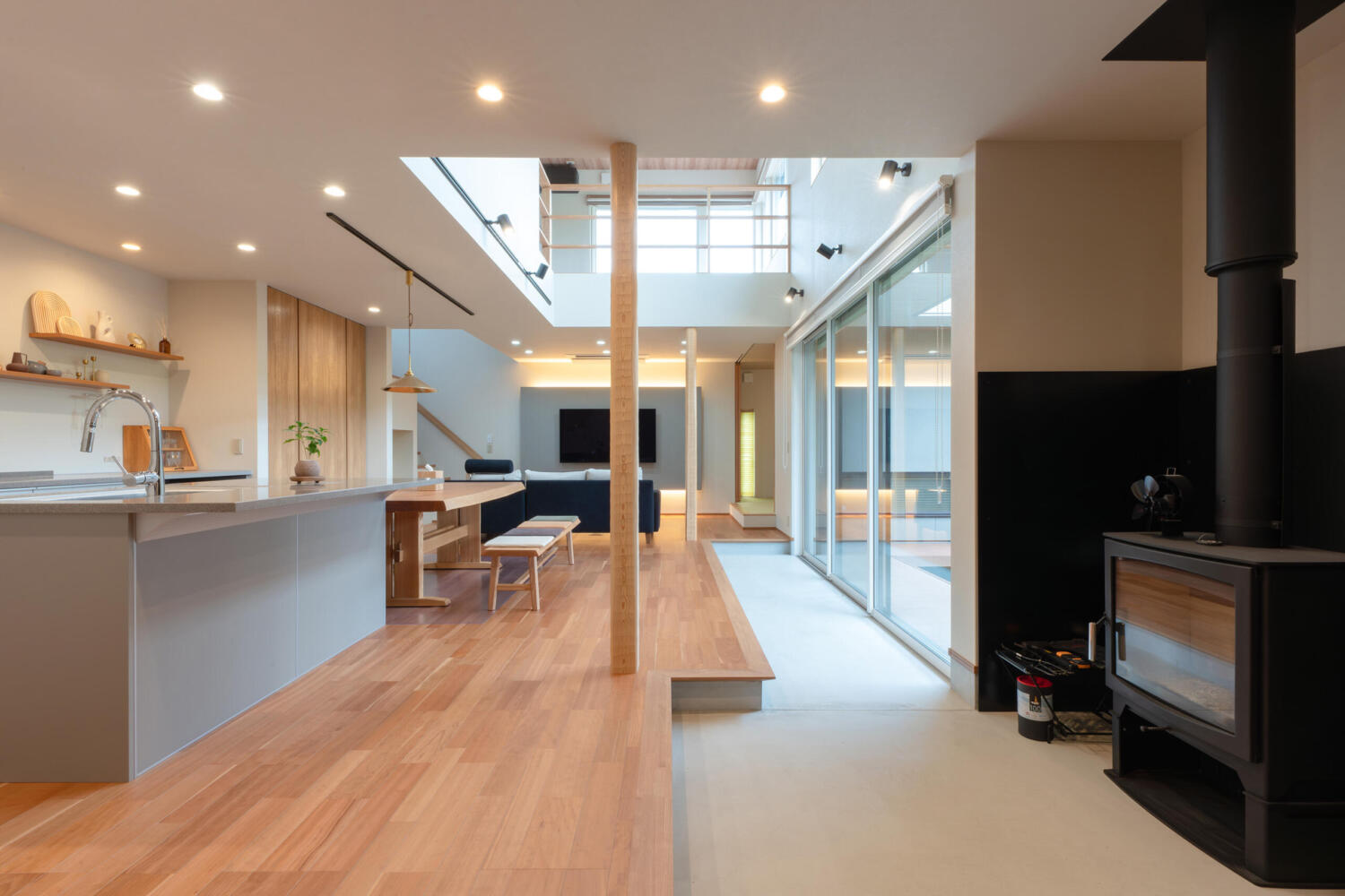 また、段差を活かしたフロア構成が、空間に奥行きとリズムをもたらし、限られた面積の中にも開放感と機能性を両立。視線が抜ける設計により、どこにいても窮屈さを感じることなく、のびやかな暮らしが実現します。