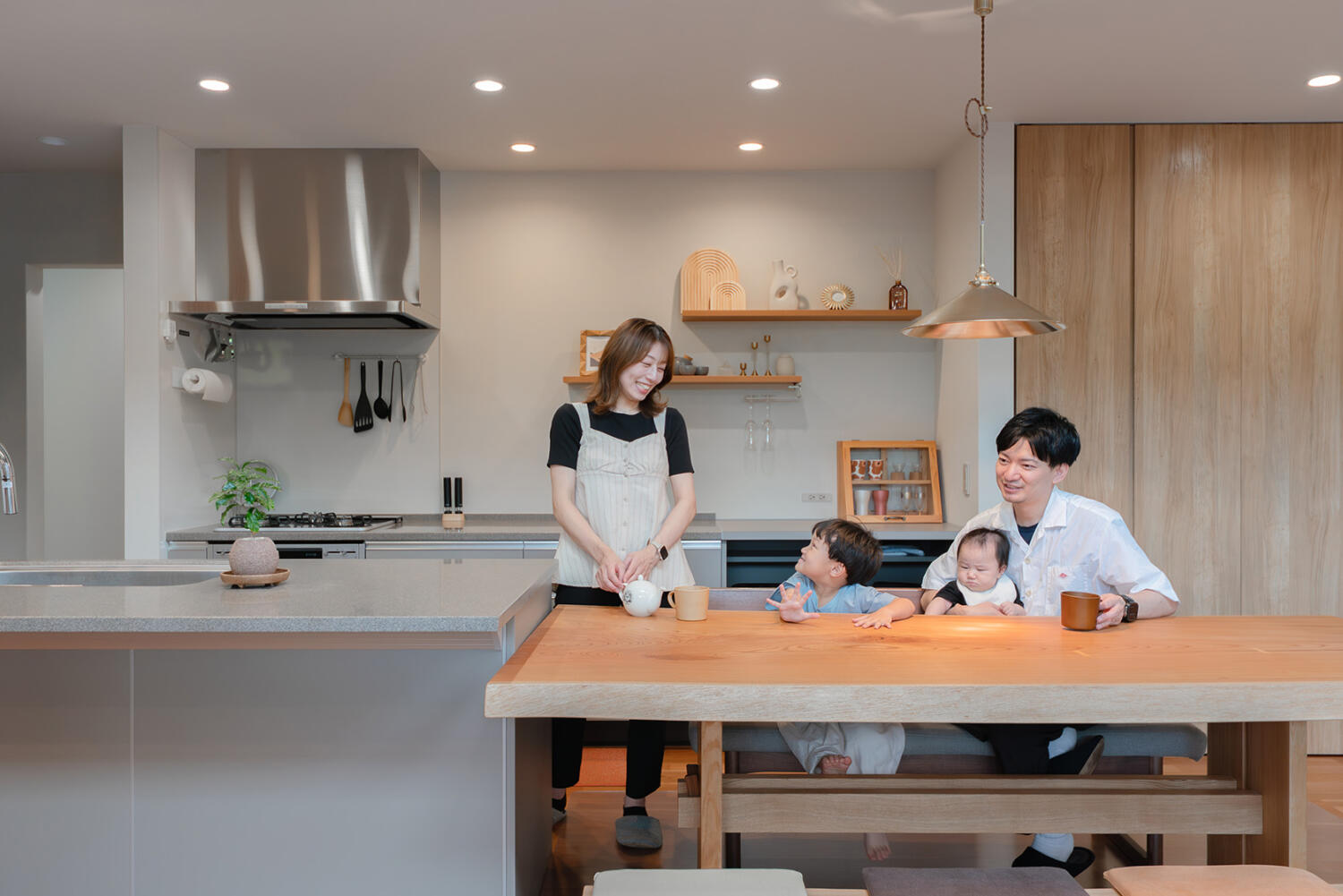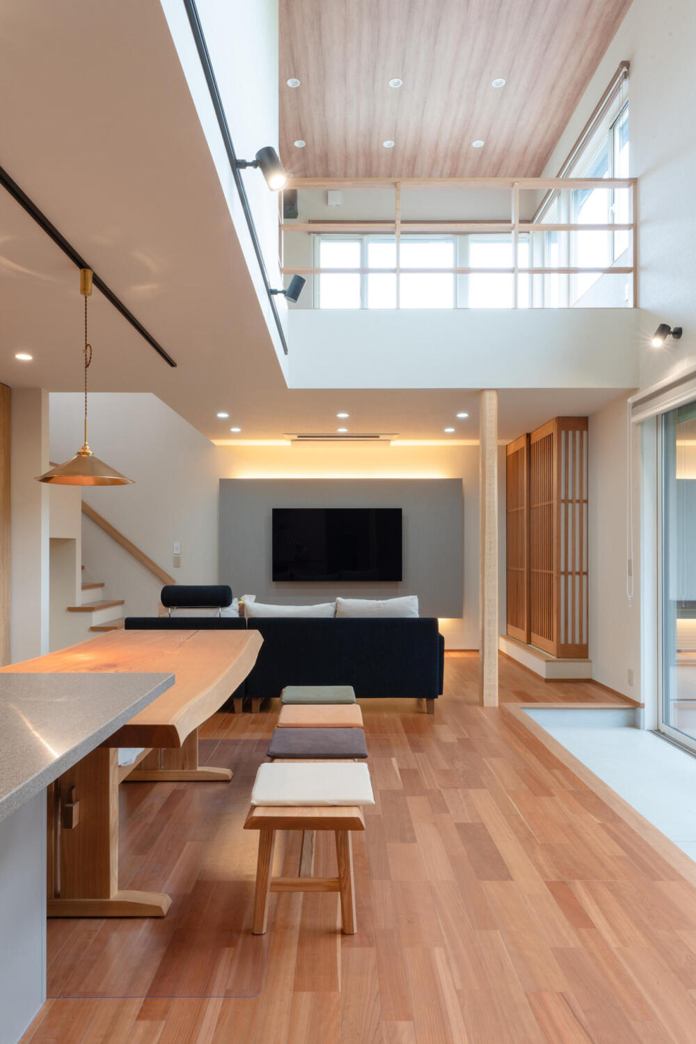 家族が自室にこもらず自然とリビングに集まるような空間を望んでいた