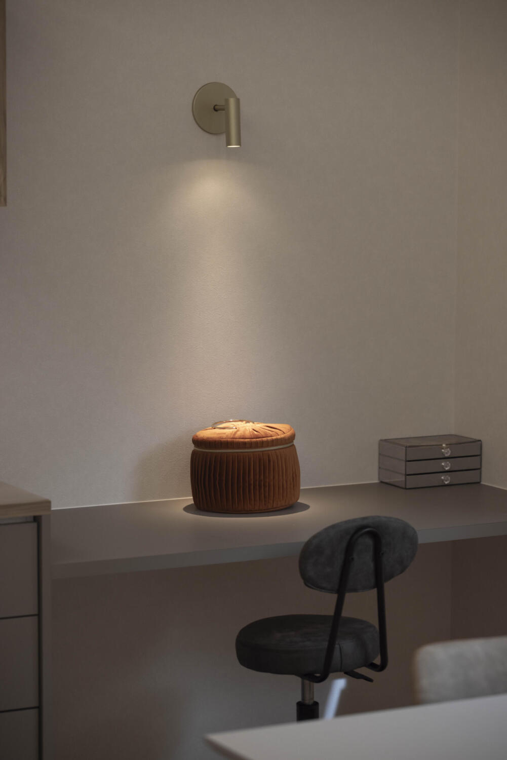 静かな夜、灯りがともると空間は少しだけ表情を変えます。