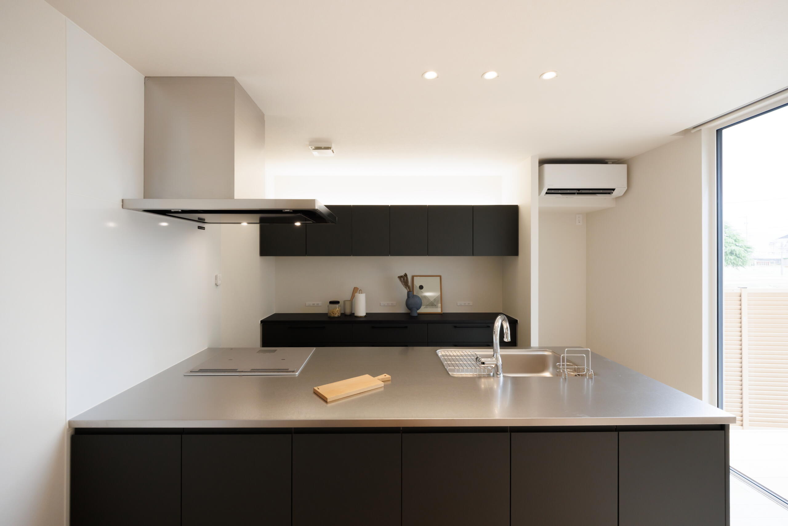 マットな質感とステンレス天板が調和し、上品さと実用性を両立しています。